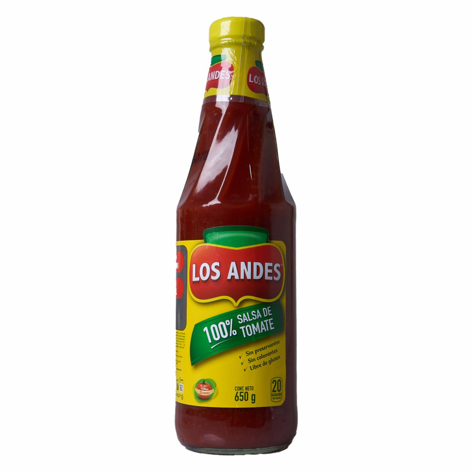 - Disfruta de la autenticidad de la Salsa de Tomate Sin Gluten de LOS ANDES. Esta salsa, elaborada sin gluten, es ideal para aquellos que buscan opciones libres de esta proteína, manteniendo el delicioso sabor de las auténticas salsas de tomate