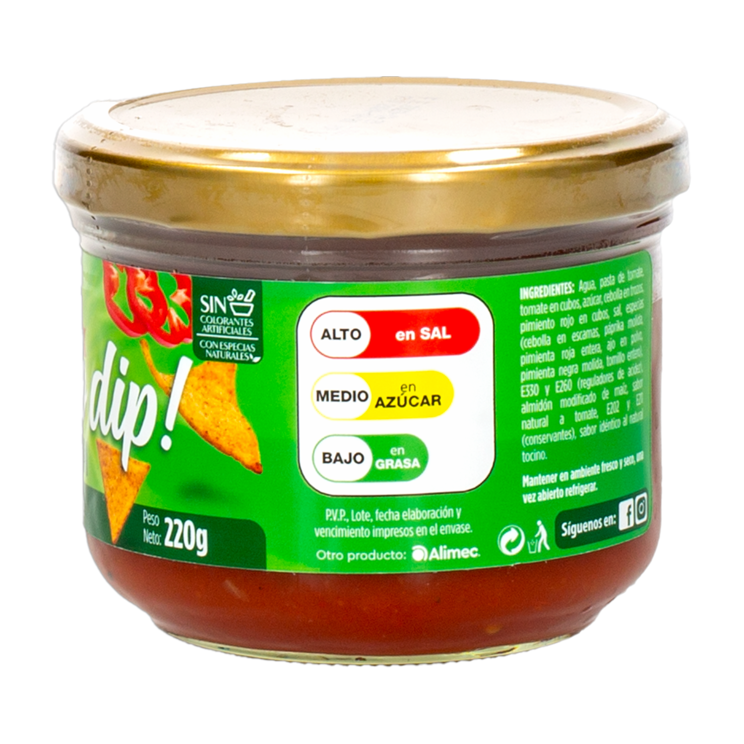 • Textura ligera y sabor incomparable con trozos de pimientos rojos y cebolla, lista para consumir en snacks, papas, nachos y verduras