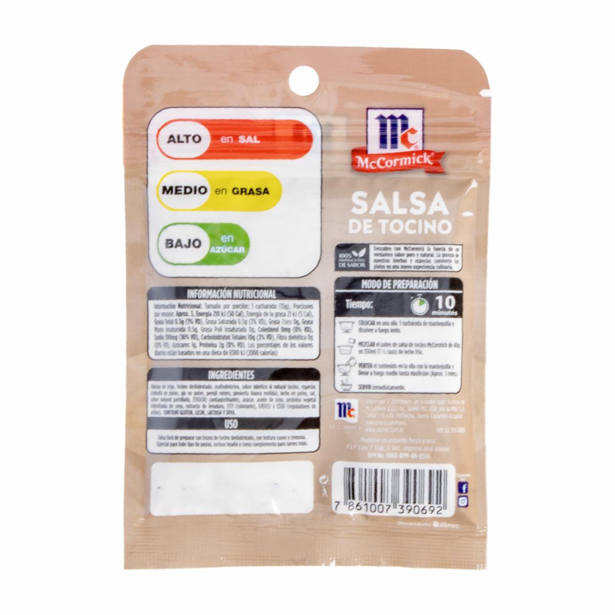 - Mezcla en polvo de tocino deshidratado y especias para preparar salsa en minutos