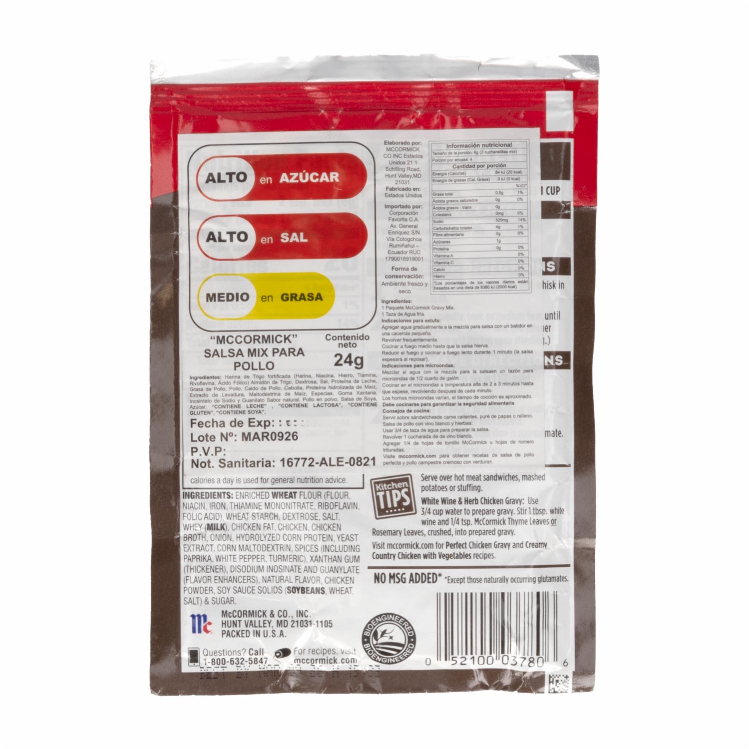 Salsa Mix Para Pollo MCCORMICK 24 g – MCCORMICK. Disponible en nuestros locales. Precio y stock pueden variar según la tienda.
