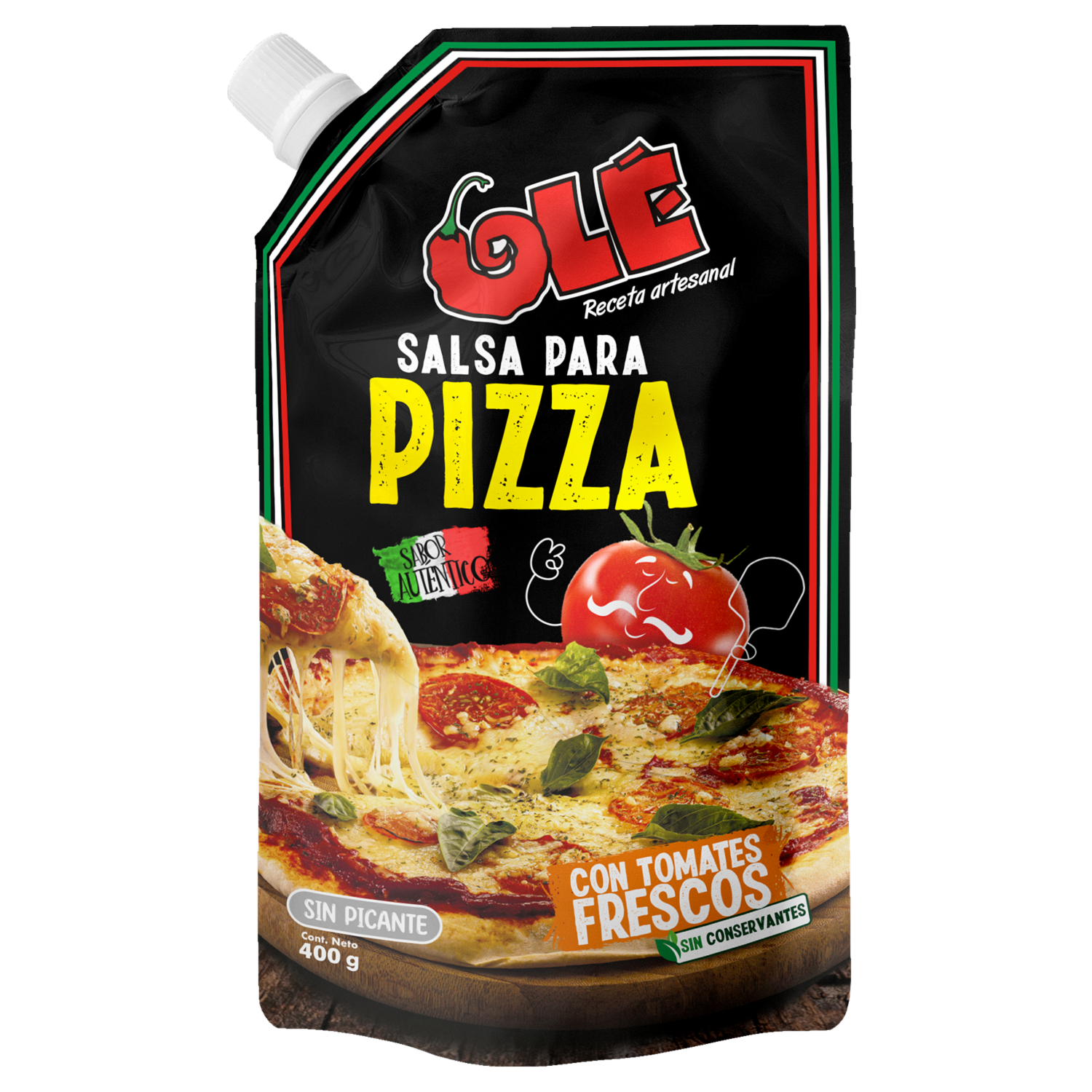 - Eleva El Sabor De Tus Pizzas Caseras Con La Salsa Para Pizza Ole De 400 G. Esta Salsa, Cuidadosamente Preparada Con Ingredientes De Alta Calidad, Te Brinda El Equilibrio Perfecto De Tomates Frescos Y Especias, Añadiendo Autenticidad Y Delicioso Sabor Italiano A Cada Bocado