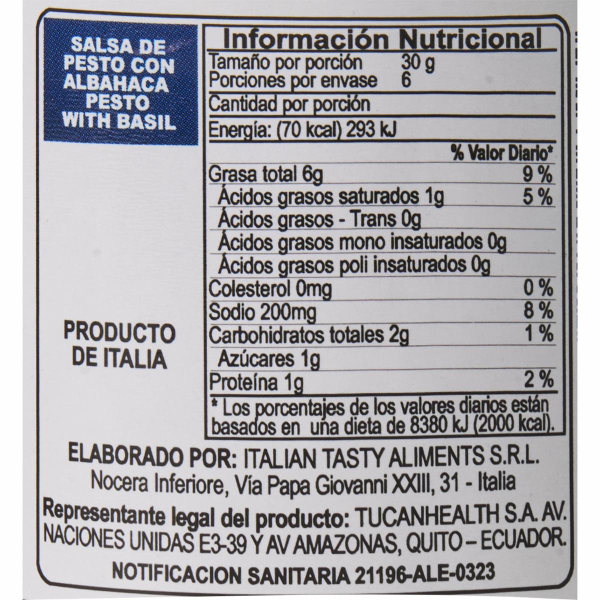 - La salsa pesto se elabora a partir de una pasta de albahaca, ajo, nueces y sal.