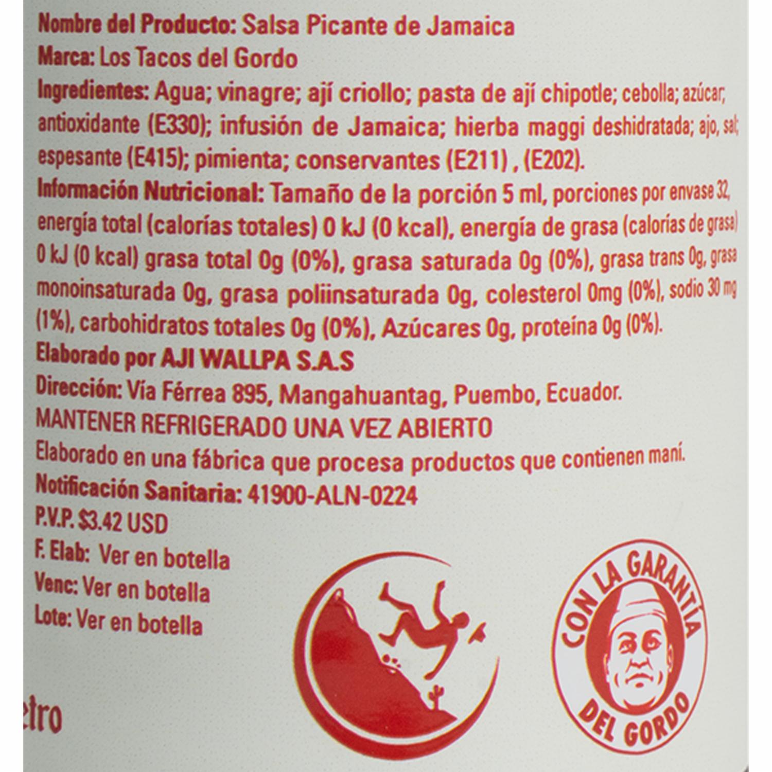 Salsa Picante Jamaica LOS TACOS DEL GORDO 160 Ml
