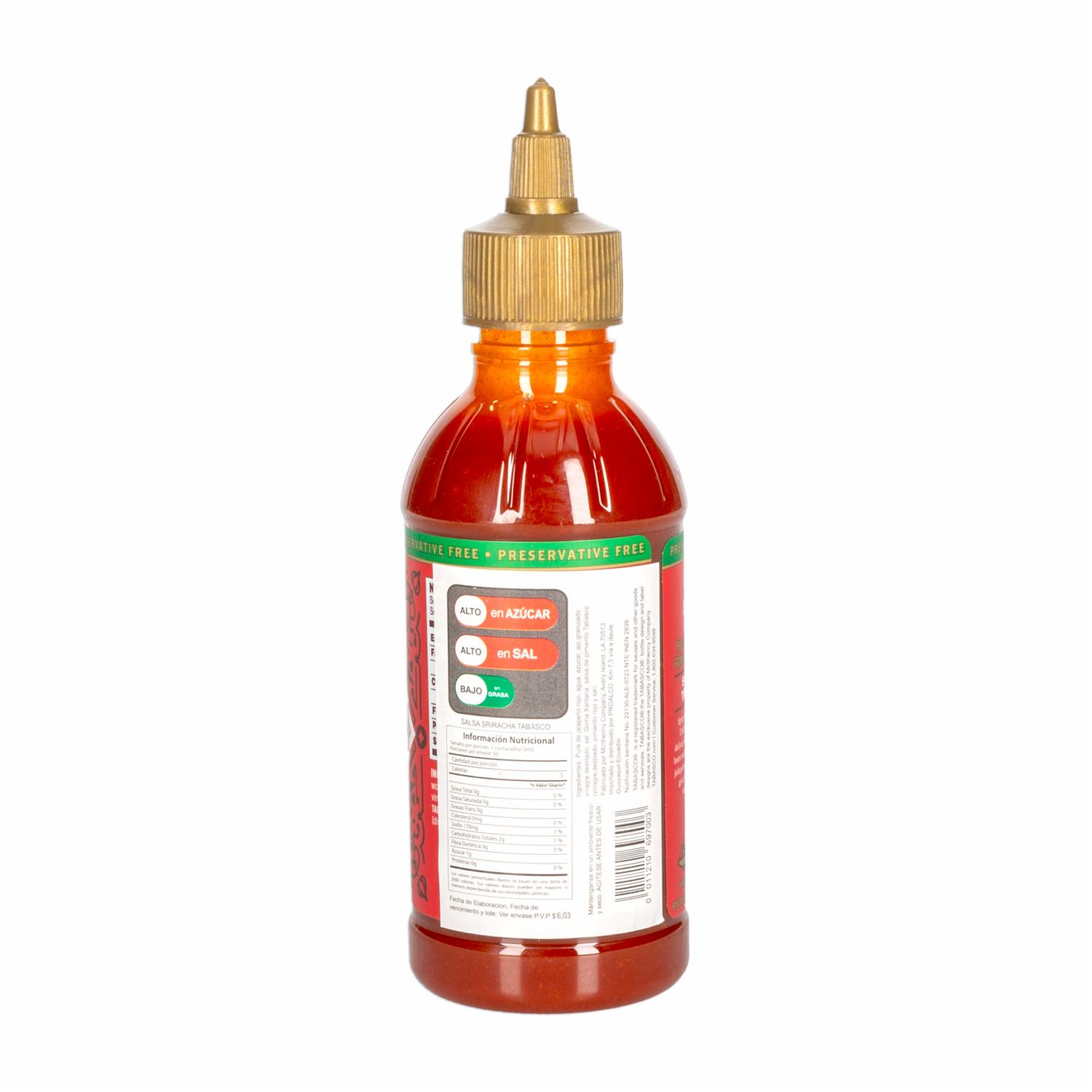 - Déjate cautivar por el irresistible sabor de nuestra Salsa Sriracha Clásica de Tabasco. Esta botella de 256 g te ofrece la experiencia auténtica de la popular salsa Sriracha, elaborada con la calidad y el sabor característicos de la marca Tabasco
