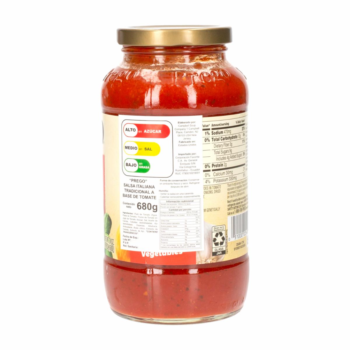 Salsas Italiana Tradicional Sin Gluten PREGO Frasco