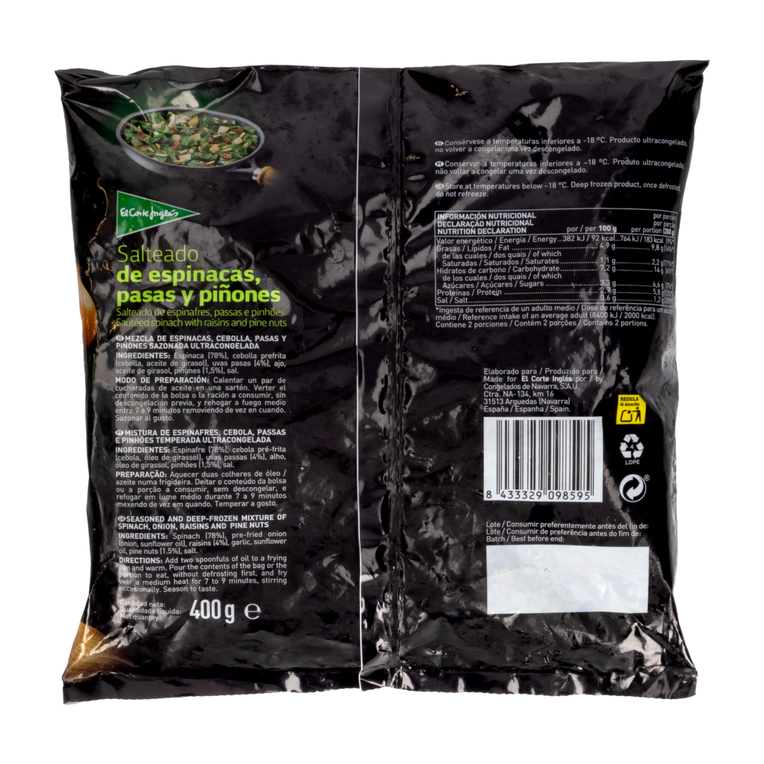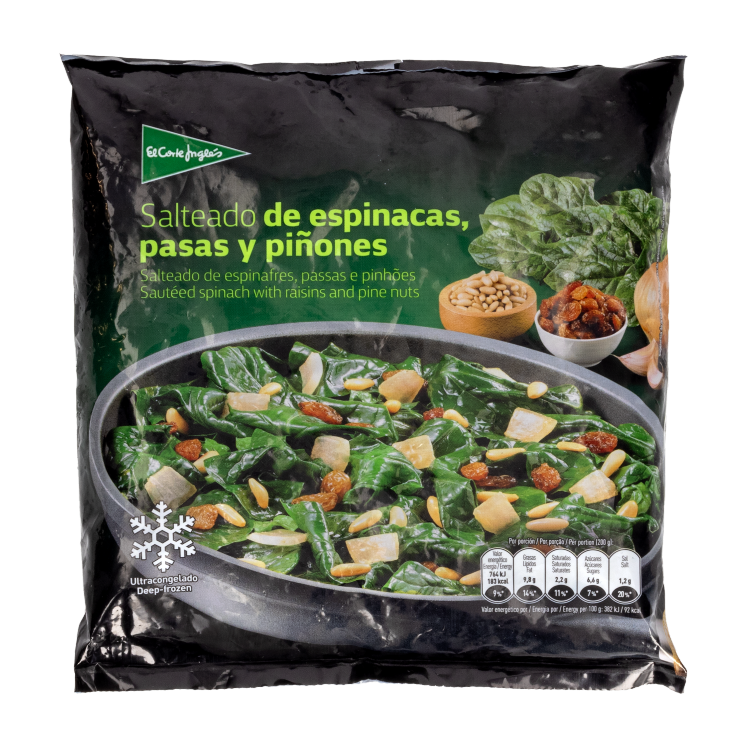consultando preciosSalteado De Espinaca Pasas Y Piñones EL CORTE INGLÉS 400 G – EL CORTE INGLES. Disponible en nuestros locales. Precio y stock pueden variar según la tienda.