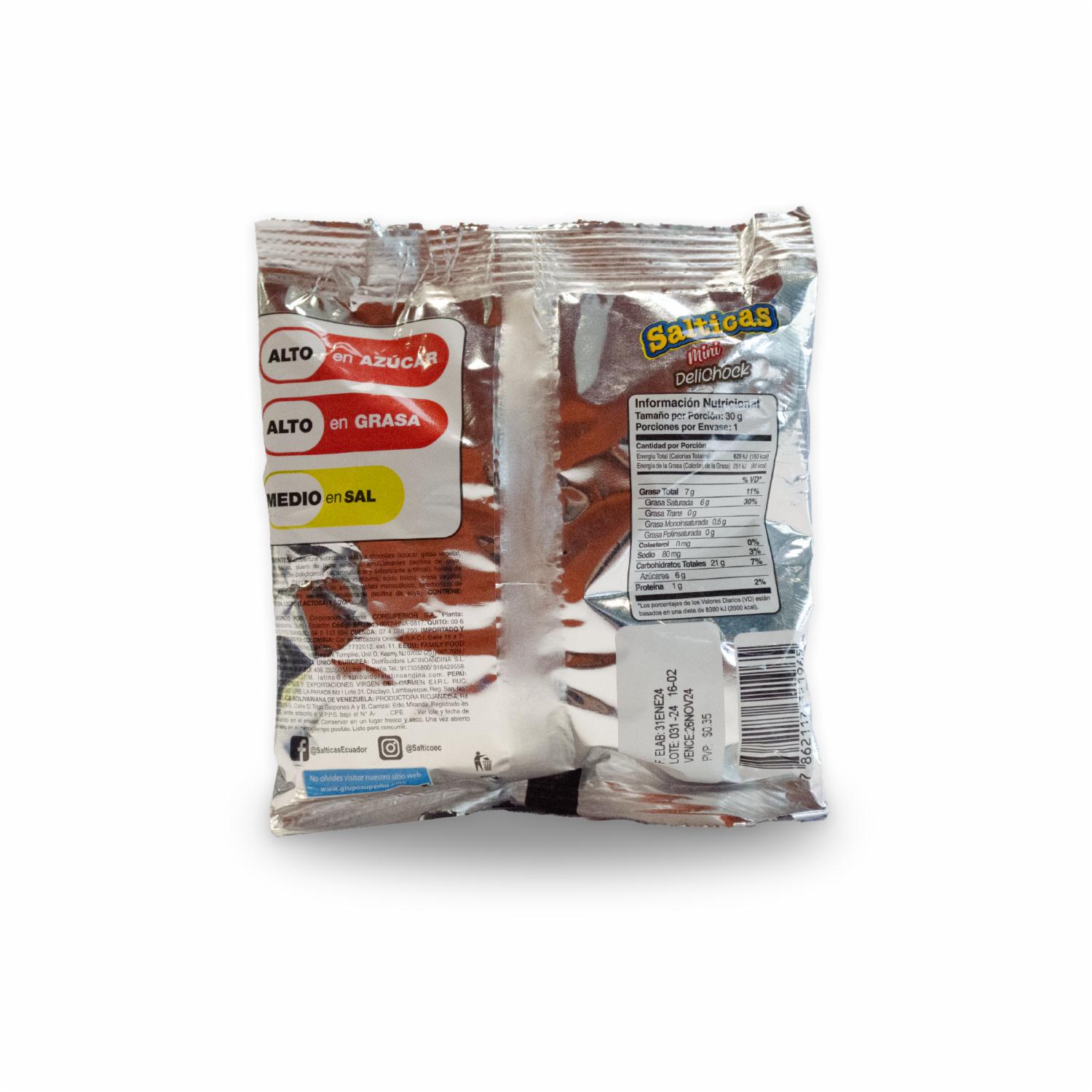 Galleta De Dulce Con Cobertura Sabor A Chocolate SALTICAS DELICHOCK 30 G – SALTICAS DELICHOCK. Disponible en nuestros locales. Precio y stock pueden variar según la tienda.