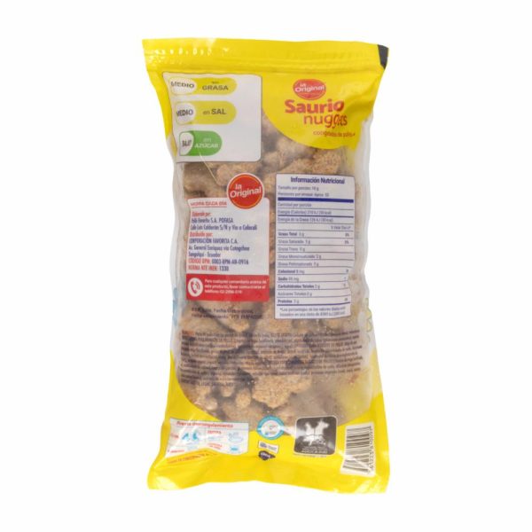 Saurio Nuggets congelados, ¡listos en solo 4 minutos! Crujientes y sabrosos, con todo el sabor que a los más pequeños les encanta. Perfectos para una comida rápida y divertida, ideales para acompañar con tu salsa favorita