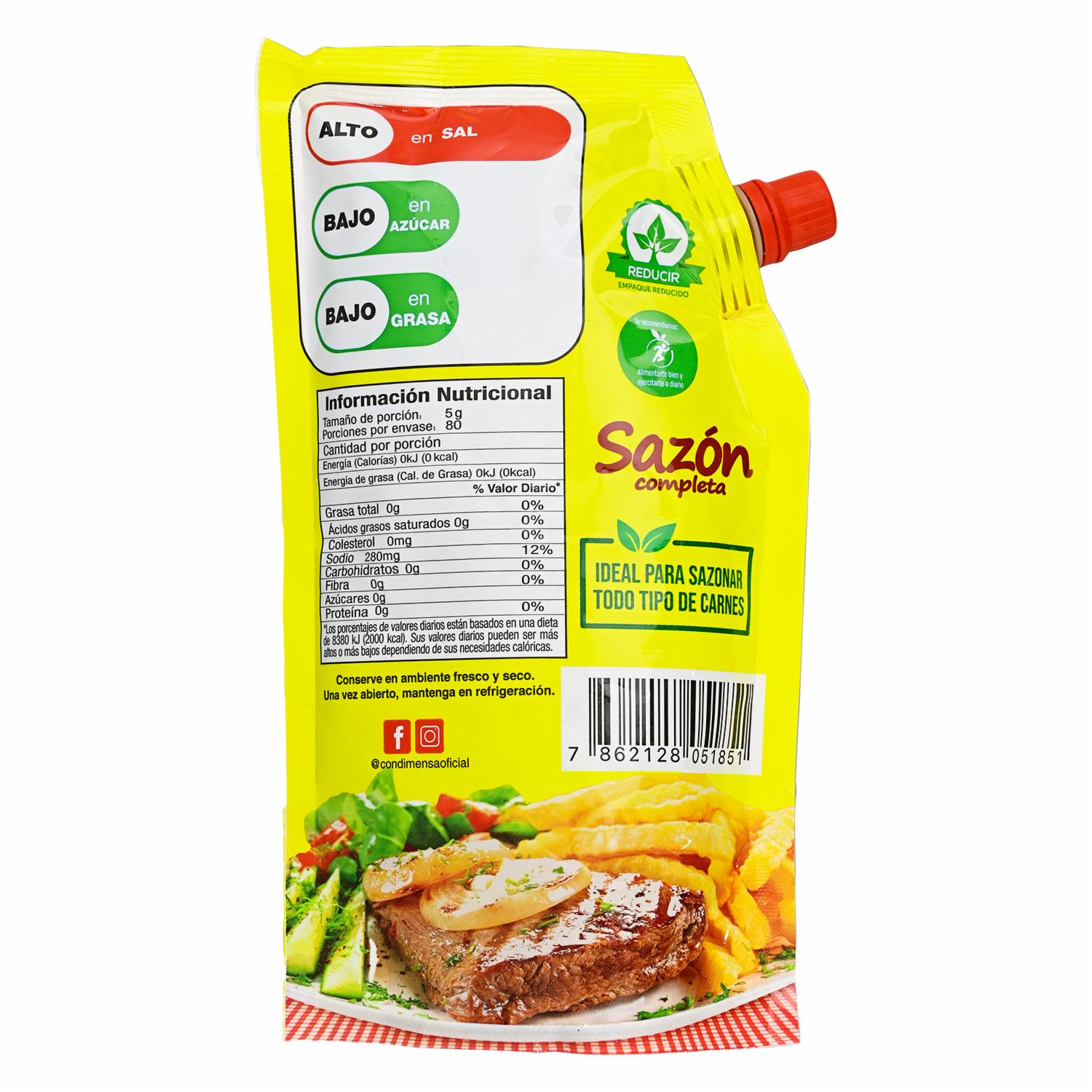 Sazonador Completo CONDIMENSA Doypack – CONDIMENSA. Disponible en nuestros locales. Precio y stock pueden variar según la tienda.