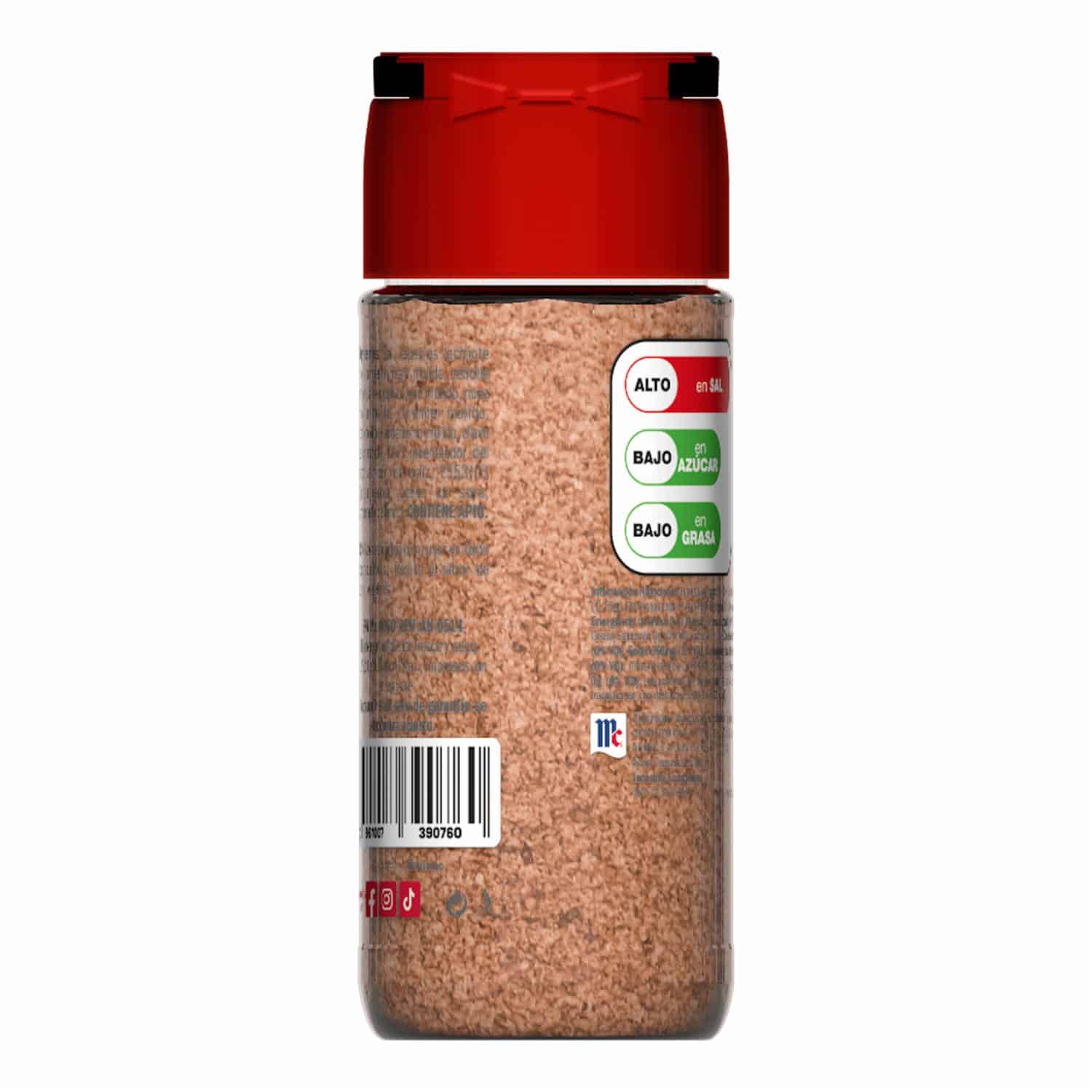 • Mezcla de especias naturales: achiote molido, pimienta negra, cebolla, ajo, apio y comino