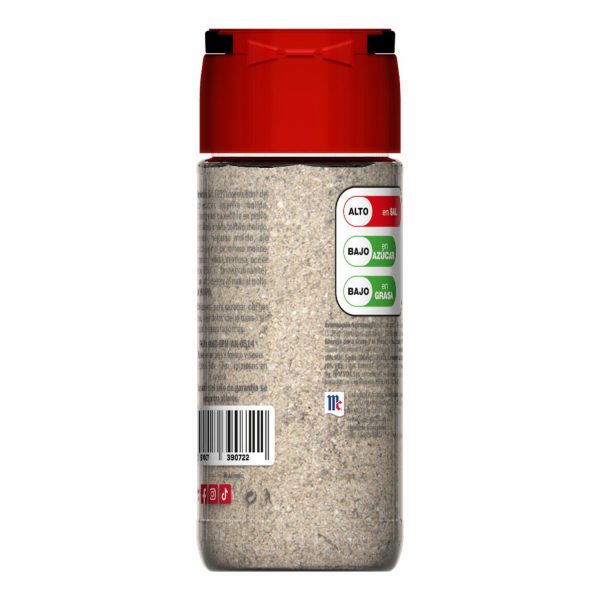 Mezcla de especias naturales: paprika, pimienta negra, cebolla, pimienta blanca, ajo, tomillo, salvia, romero y nuez moscada