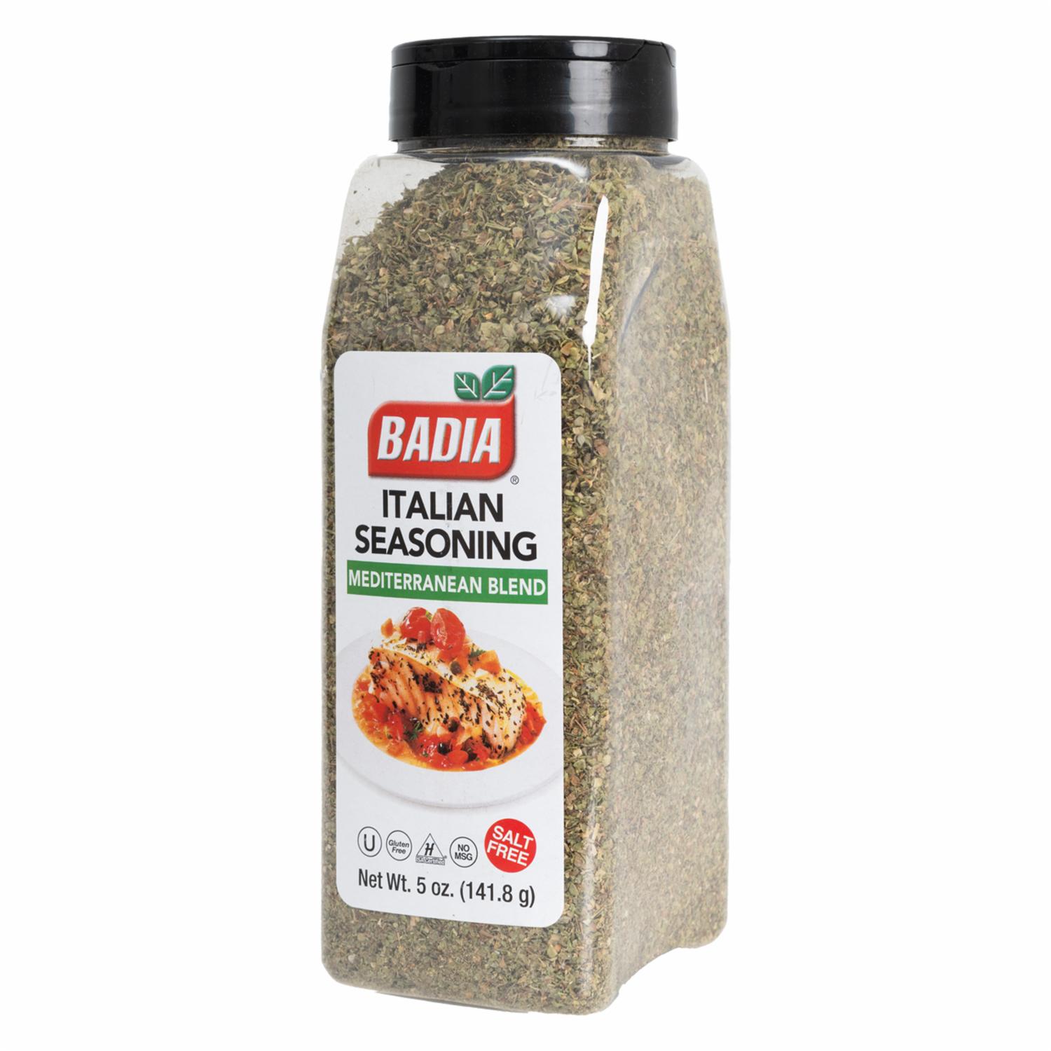 El sazonador italiano Badia tiene las siguientes propiedades principales:. - Mezcla de especias italianas que incluyen orégano, albahaca, tomillo, romero y ajo. - Aromático y sabroso, ideal para aderezar carnes, aves, pescados, pastas, salsas y vegetales. - No contiene MSG ni gluten. - Viene en un envase de cristal con tapa hermética que permite conservar las especias frescas por más tiempo