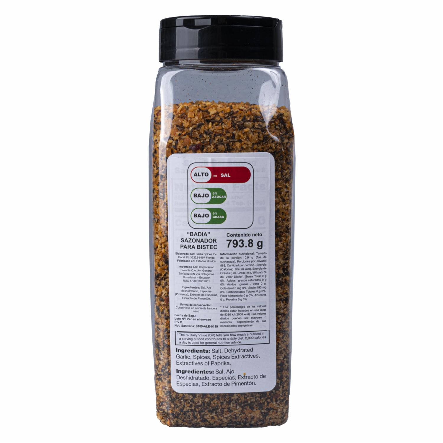 Sazonador Para Bistec BADIA 794 g – BADIA. Disponible en nuestros locales. Precio y stock pueden variar según la tienda.
