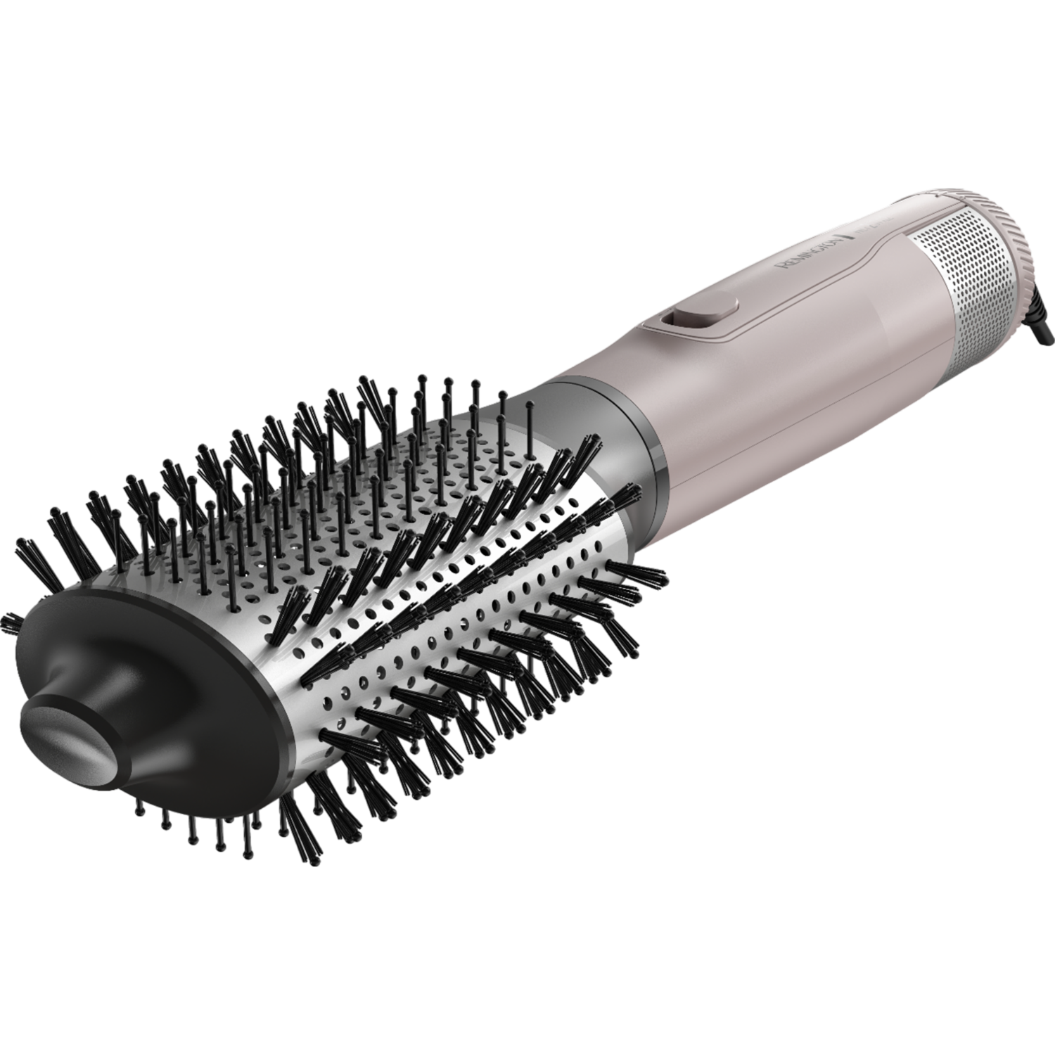- - Barril Recubierto de Cerámica Avanzada: Infundido con microacondicionadores, protege el cabello del daño por calor y ayuda a eliminar el frizz. - Diseño Ovalado con Cerdas Mixtas: Perfecto para crear volumen en las raíces y suavizar el cabello mientras se acerca a la raíz para un acabado con más movimiento