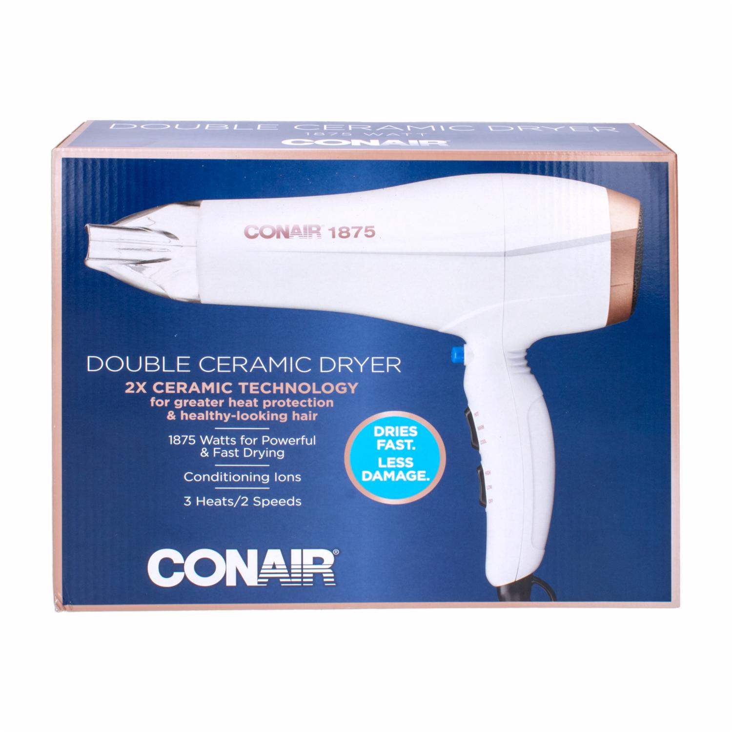 - Secador de pelo de cerámica: con tecnología de cerámica doble más iones acondicionadores para combatir el encrespamiento para menos daño y más brillo, este secador de pelo proporciona calor infrarrojo y uniforme para un secado rápido y menos daños