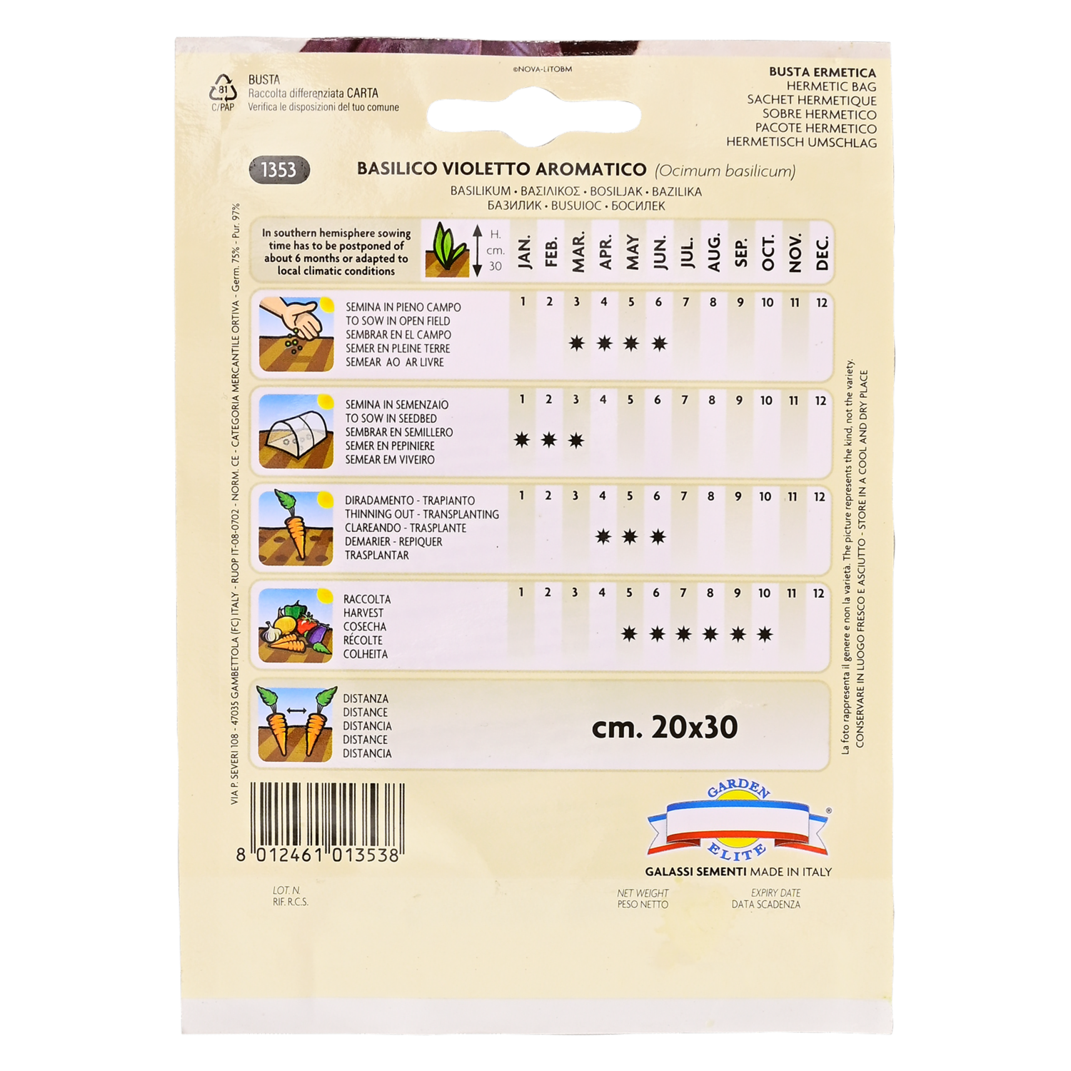 consultando preciosSemillas De Albahaca Morada GALASSI SEMENTI 1.5 g – GALASSI SEMENTI. Disponible en nuestros locales. Precio y stock pueden variar según la tienda.