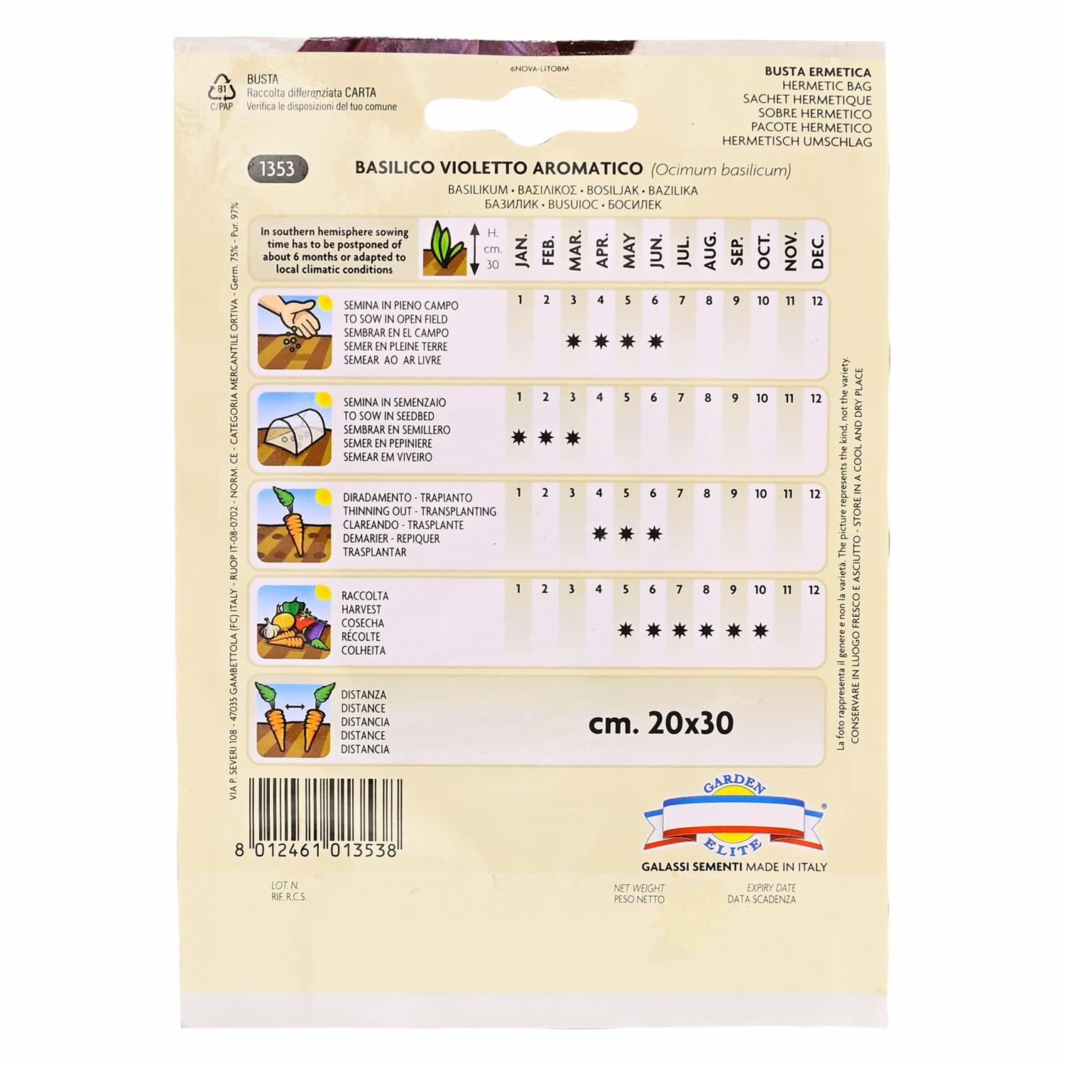 Semillas De Albahaca Morada GALASSI SEMENTI 1.5 g – GALASSI SEMENTI. Disponible en nuestros locales. Precio y stock pueden variar según la tienda.