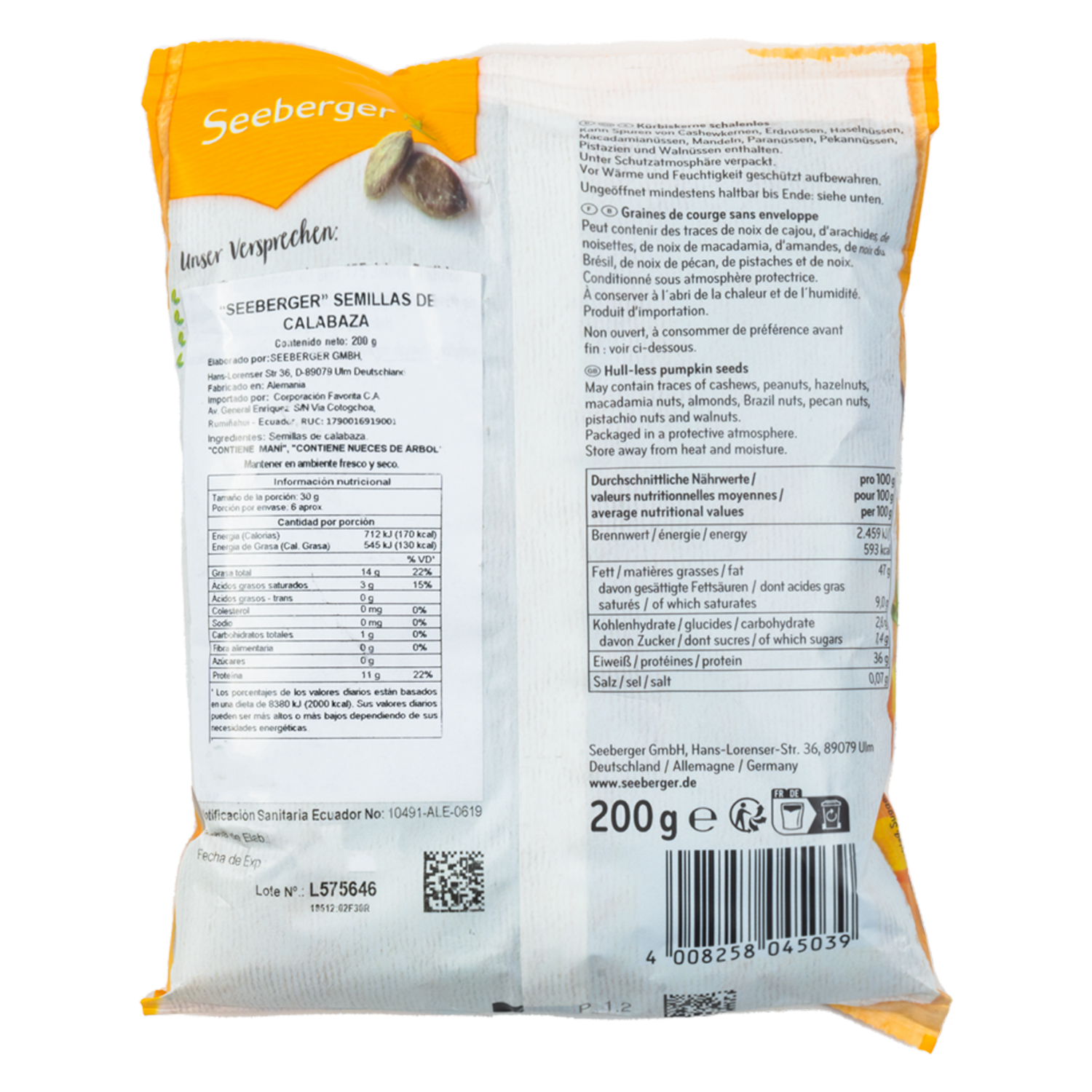 consultando preciosSemillas De Calabaza SEEBERGER 200 G – SEEBERGER. Disponible en nuestros locales. Precio y stock pueden variar según la tienda.