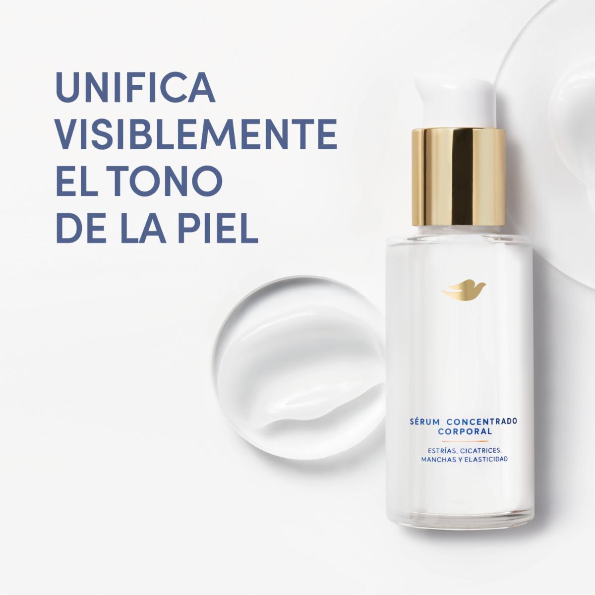 - El Sérum Corporal Concentrado Dove 100 ml es un producto diseñado para proporcionar una hidratación intensiva y reparar la piel de manera efectiva. Su fórmula concentrada está pensada para nutrir y revitalizar la piel de forma más rápida y profunda, ofreciendo una experiencia de cuidado intensivo