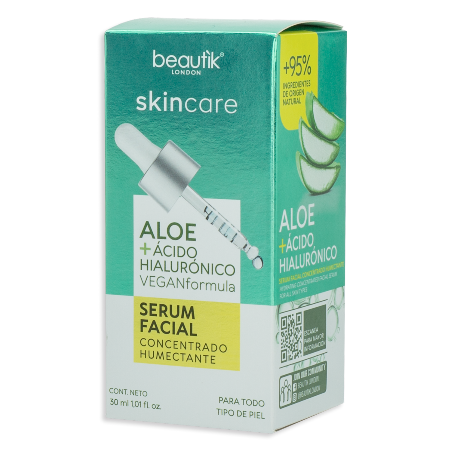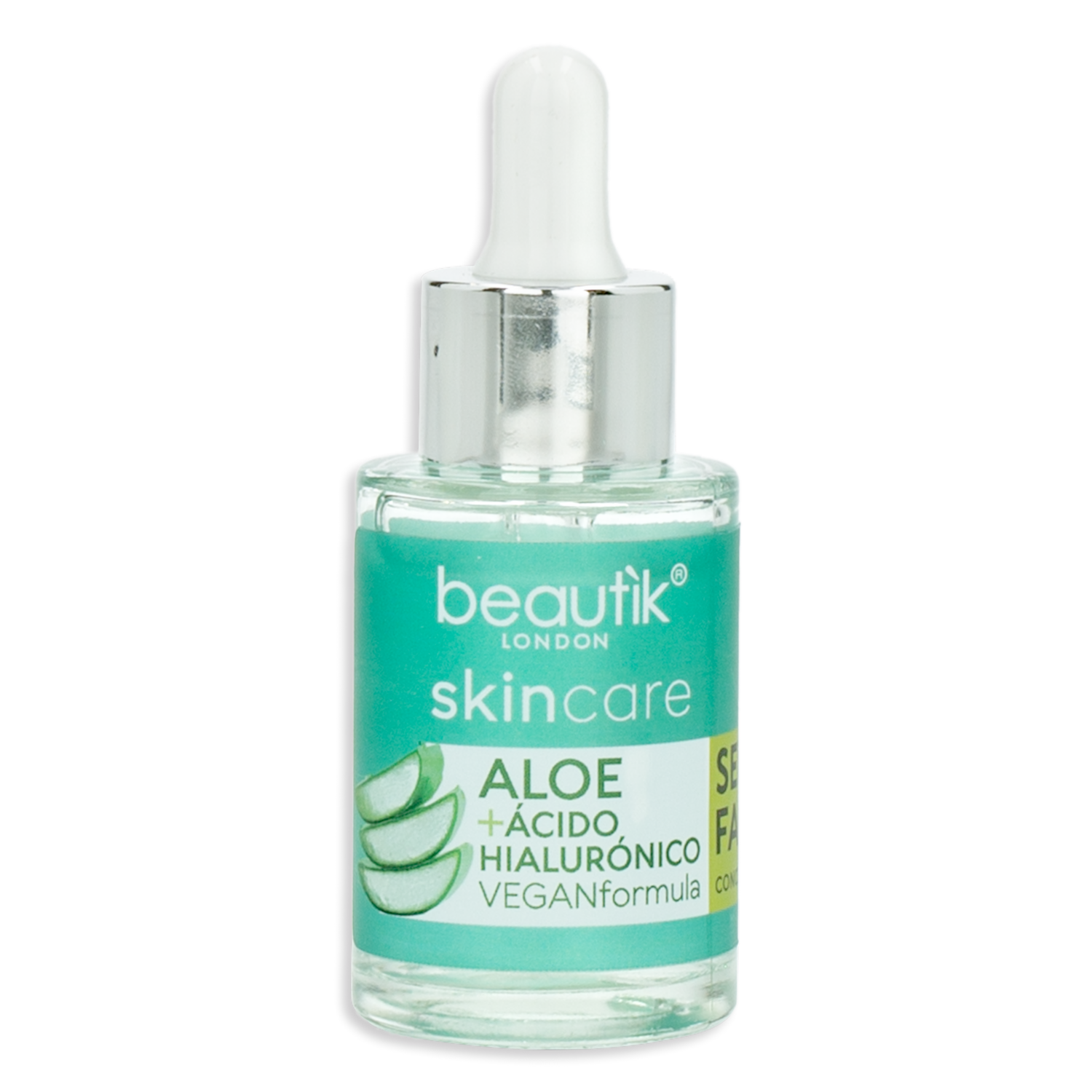 Sérum Facial Concentrado Hidratante Skin Care Aloe + Ácido Hialurónico Fórmula Vegana BEAUTÌK LONDON 30 Ml