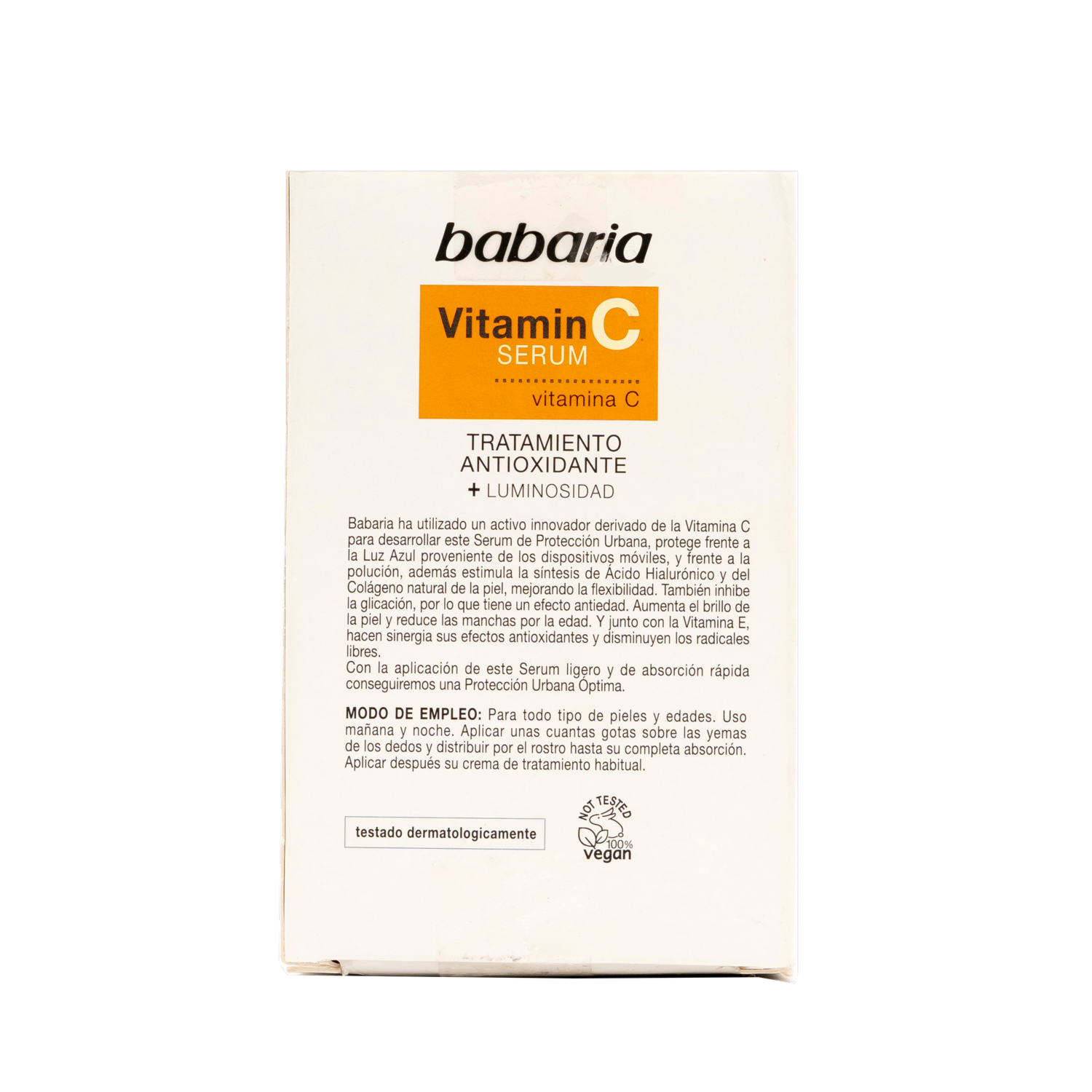 - El Serúm Vitamina C antioxidante mejora la luminosidad de la piel. Serum de protección urbana, protege frente a la luz azul de los dispositivos móviles, y frente a la polución. Además estimula la síntesis de Ácido Hialurónico y Colágeno natural de la piel, mejorando la flexibilidad. Inhibe la glicación causando efecto antiedad. Reduce las manchas