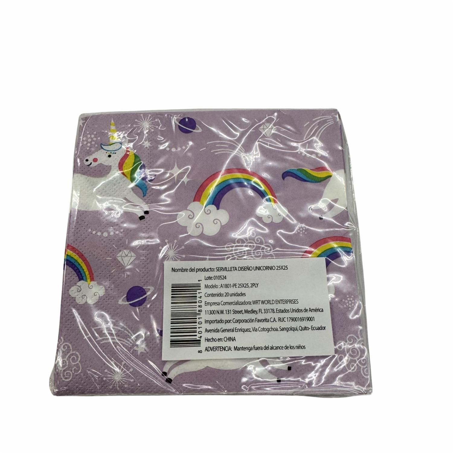 Servilleta Unicornio Morada 25X25 DFHO 20 U