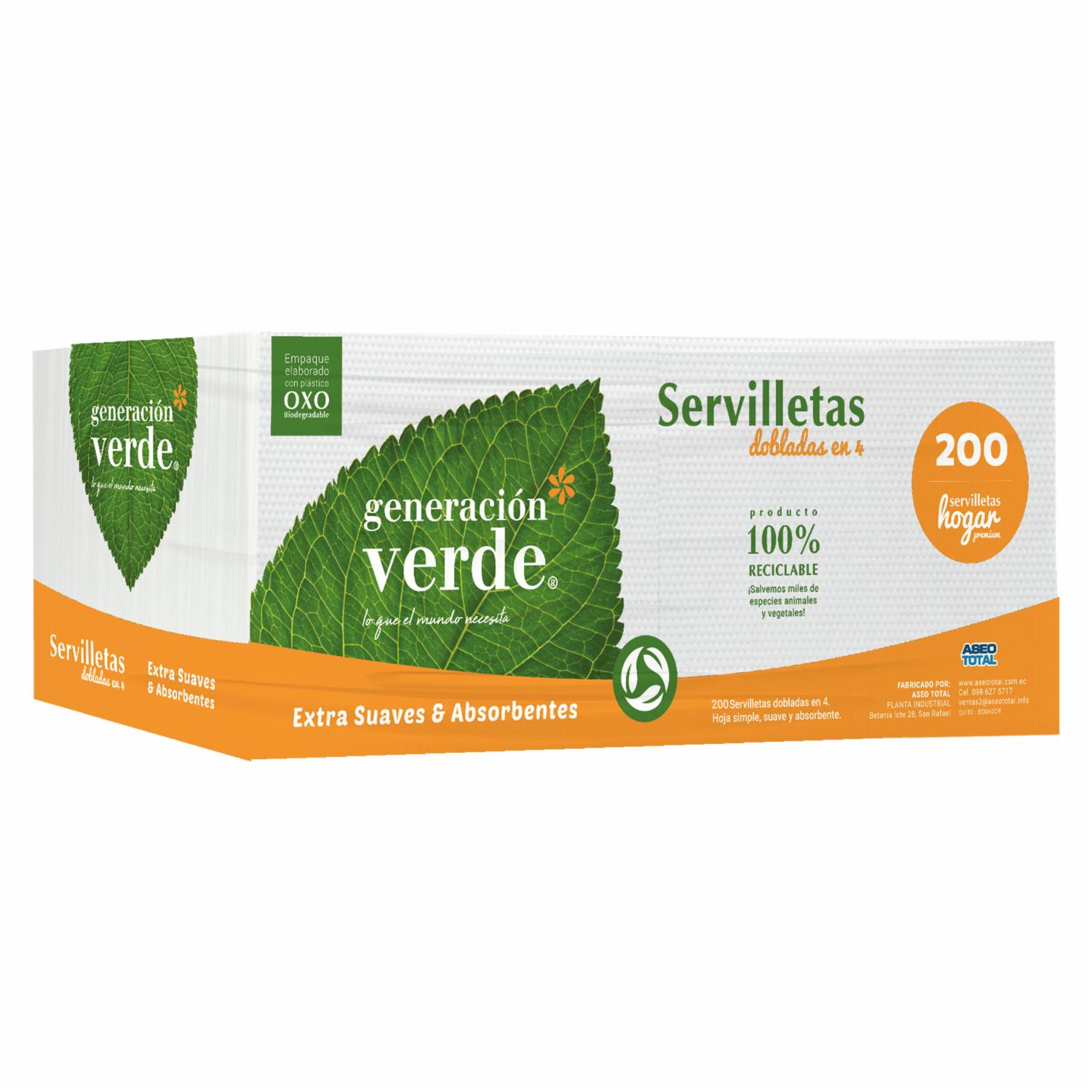 consultando preciosServilletas Para el Hogar GENERACIÓN VERDE X 200 Uds – GENERACION VERDE. Disponible en nuestros locales. Precio y stock pueden variar según la tienda.