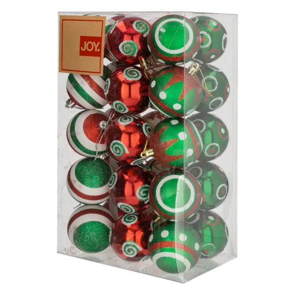 Set Bombillos Navideños Rojo Verde Caramelo Decorado 6Cm JOY 44 Piezas