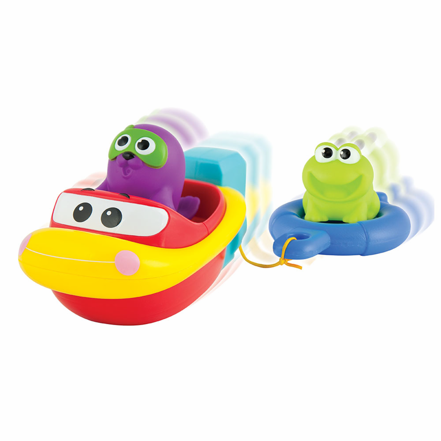 Tire de la cuerda para hacer que el bote se mueva a través del agua sin necesidad de baterías. ¡El juguete de baño perfecto para mantener ocupado a tu pequeño!