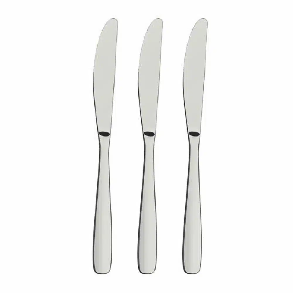 • Características - Diseño moderno y elegante - Fácil limpieza y resistencia a manchas Incluye -3 cuchillos de mesa