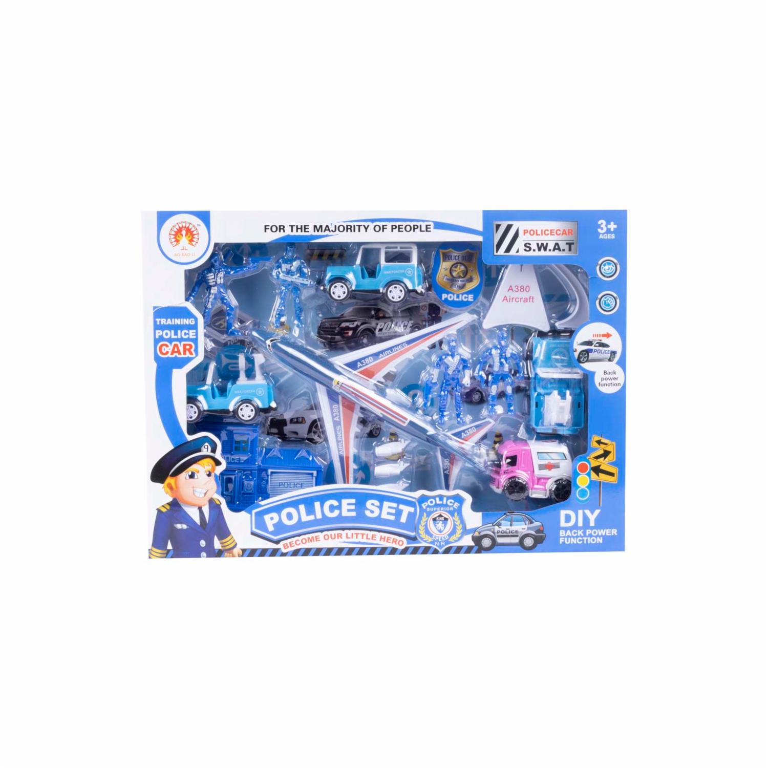 - El Set de Juego Vehículos Policiales incluye emocionantes elementos como coches de policía, Avión y accesorios. Este set es perfecto para los pequeños que disfrutan de las aventuras y el juego de roles, estimulando su imaginación y creatividad. ¡Protege, patrulla y diviértete con el Set de Juego Vehículos Policiales en Juguetón, donde la acción y la diversión se unen!