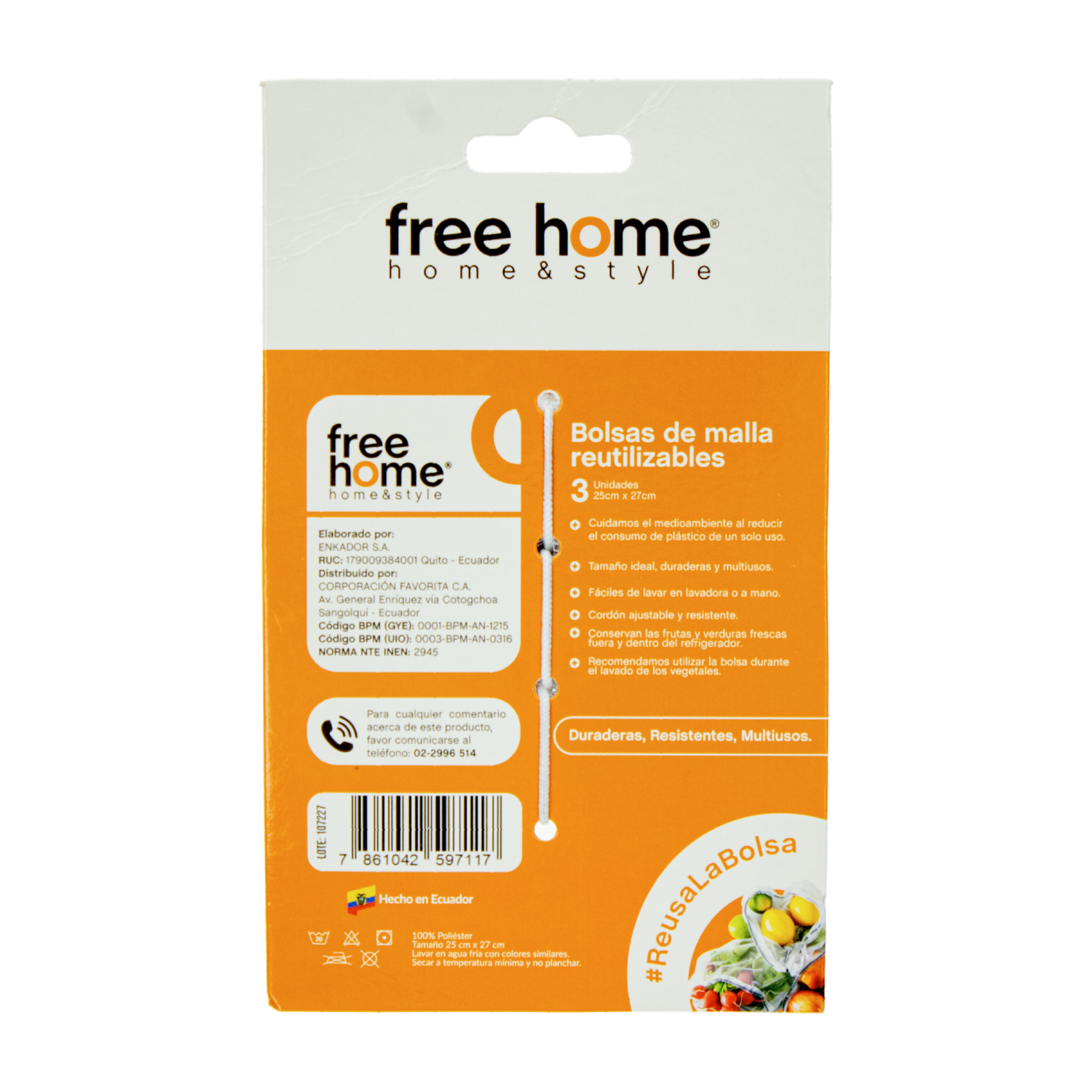 - El set de bolsas para frutas y verduras de FREE HOME viene en un paquete que contiene 3 unidades