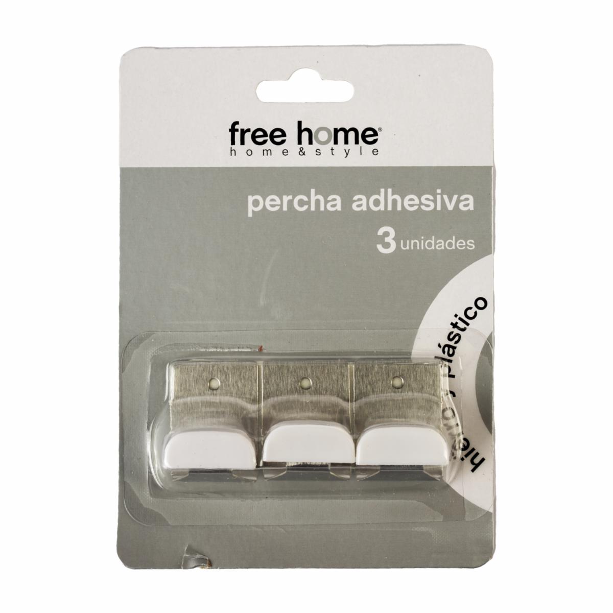 Set Ganchos Adhesivos Metal Y Plástico Blanco FREE HOME x 3 Piezas