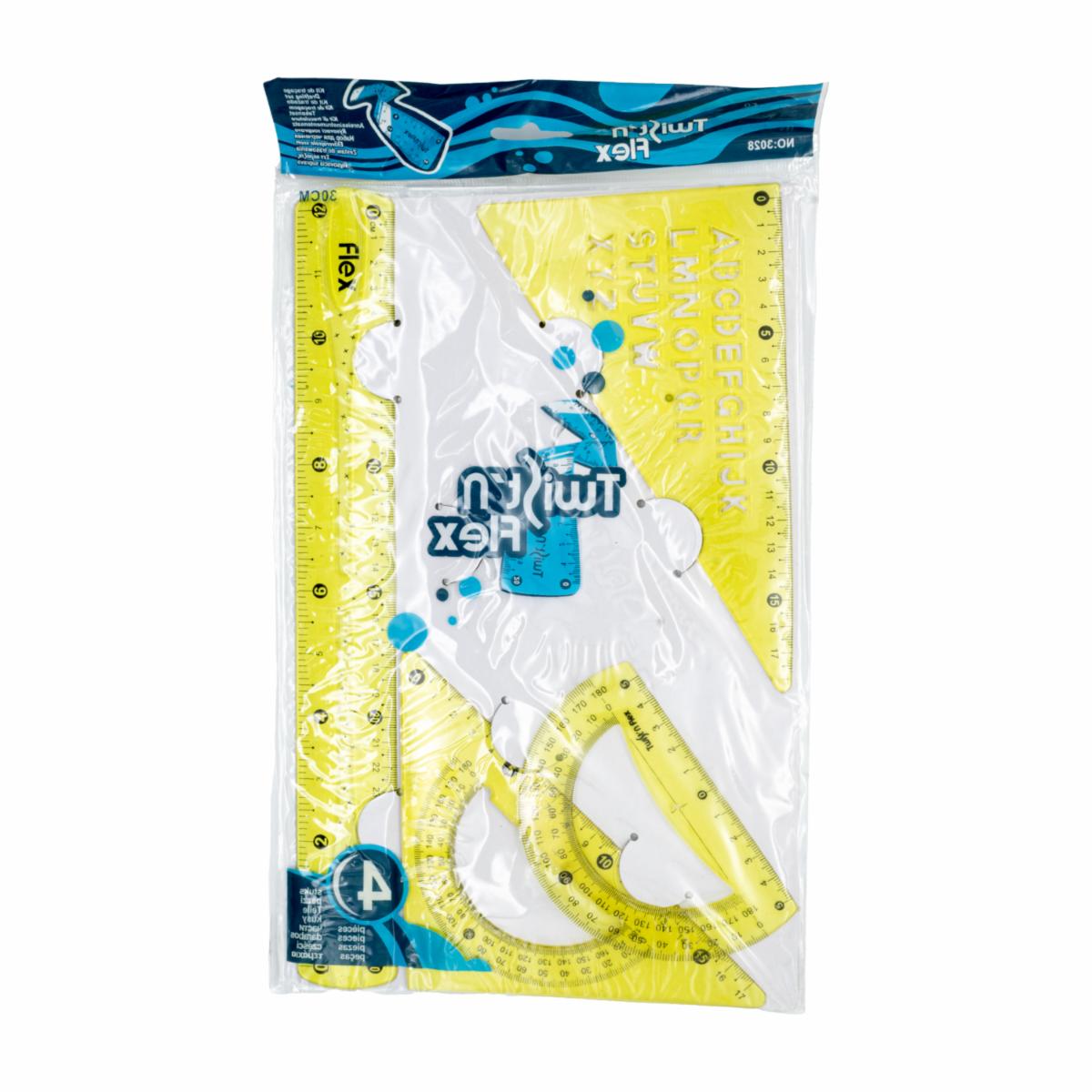 - El Set Geométrico Flex Fosforescente Regla Con Letras es un conjunto de herramientas de dibujo que incluye una regla con letras,