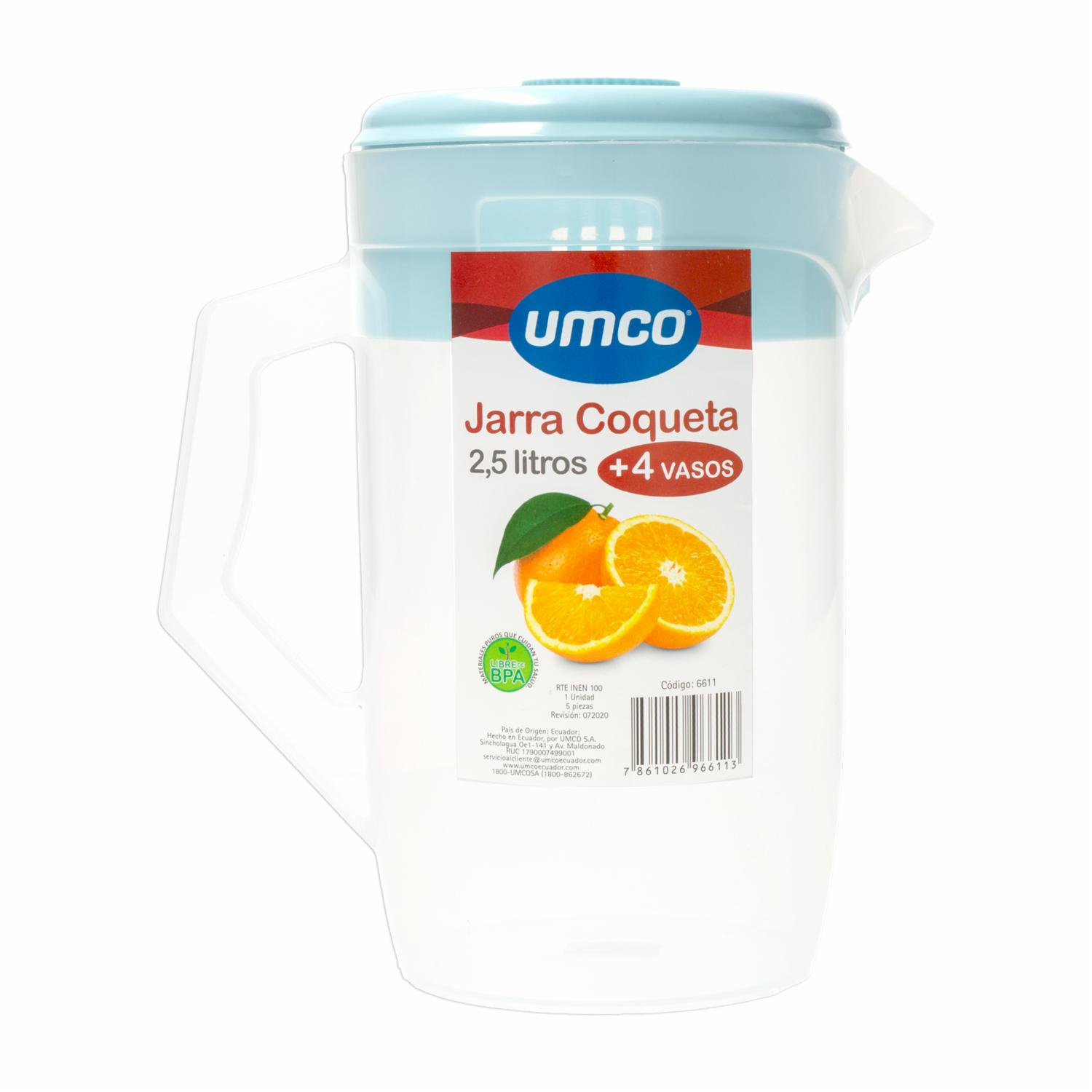 Set Jarra Plástica + 4 Vasos UMCO x 5 Piezas