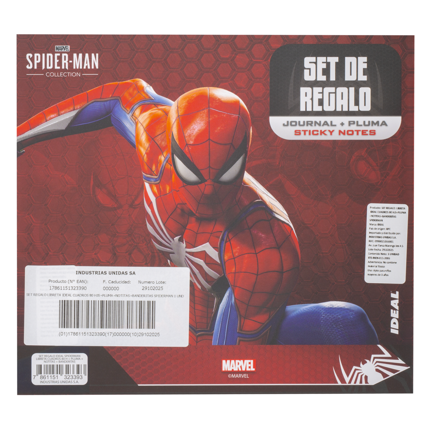 - Set Libreta De 80 Hojas Con Pluma Notas Y Banderitas Spiderman DISNEY 4 Piezas es ideal para tomar apuntes, anotar recordatorios o marcar páginas con estilo divertido de SpiderMan. Perfecto para la escuela, la oficina o tu escritorio personal. Incluye todo lo necesario para organizar tus notas y tareas