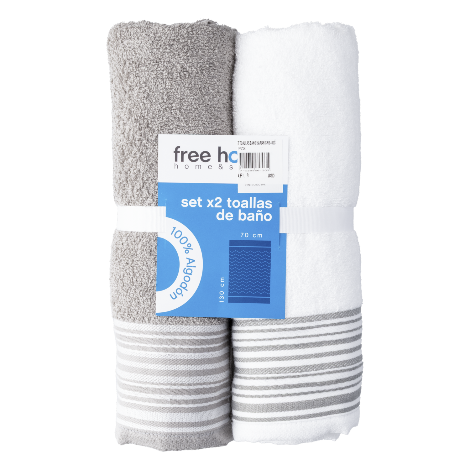 consultando preciosSet Toallas De Baño Marian Gris 400G FREE HOME 2 Piezas – FREE HOME. Disponible en nuestros locales. Precio y stock pueden variar según la tienda.