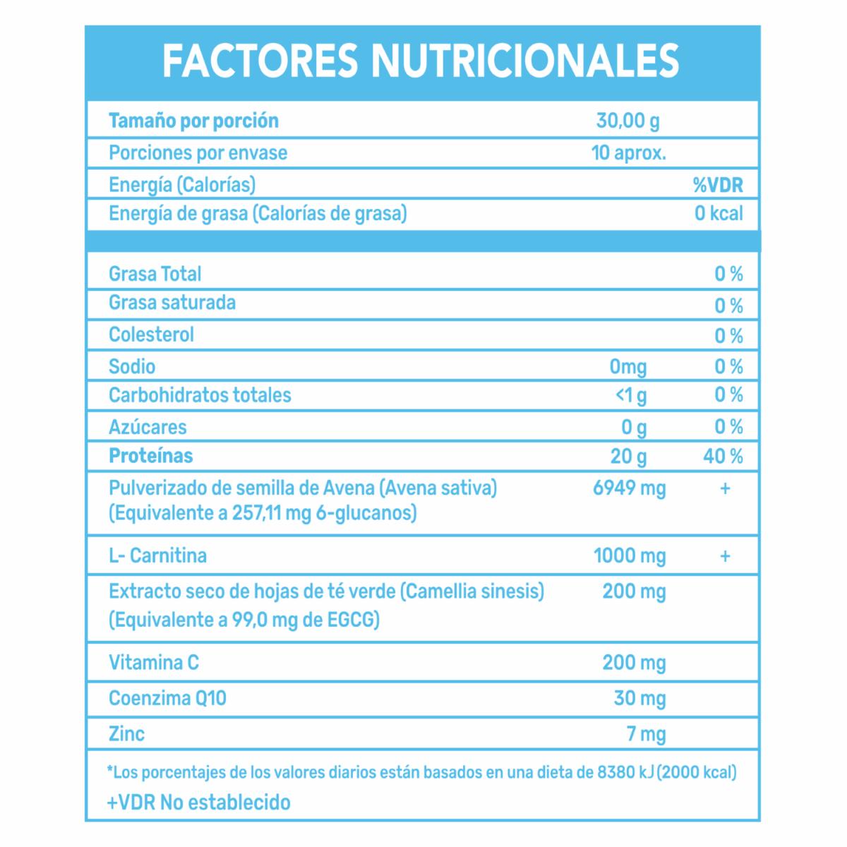 - Batido con 20 gramos de Proteína de alta calidad, L carnitina, 5 gramos de fibra, vitaminas, minerales y antioxidantes