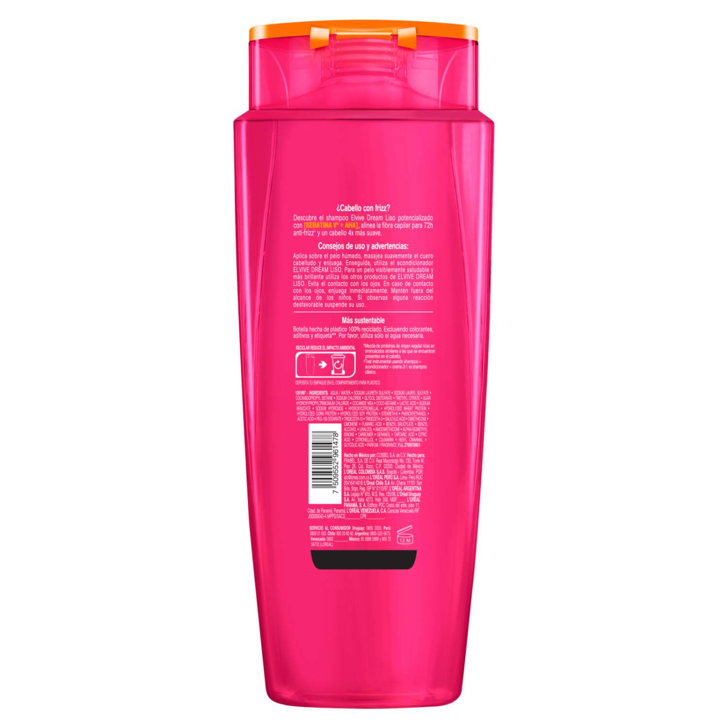 - Shampoo Elvive Dream Liso con Keratina Vegetal más AHA (Alpha silane) activada por el calor para cabello con frizz. Anti-Frizz 72H. Cabello 4X más suave. Aplicar sobre el pelo húmedo, masajear suavemente el cuero cabelludo y enjuagar