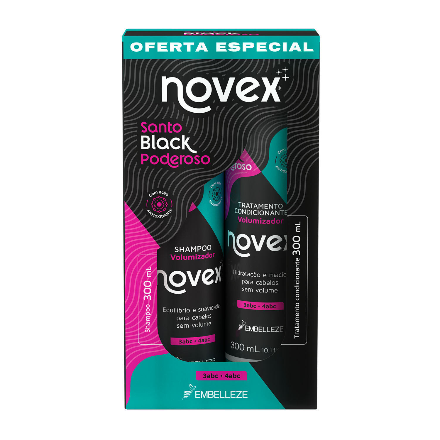 Shampoo De Cabello Y Acondicionador Santo Black Poderoso Pack NOVEX 2 X 300 Ml