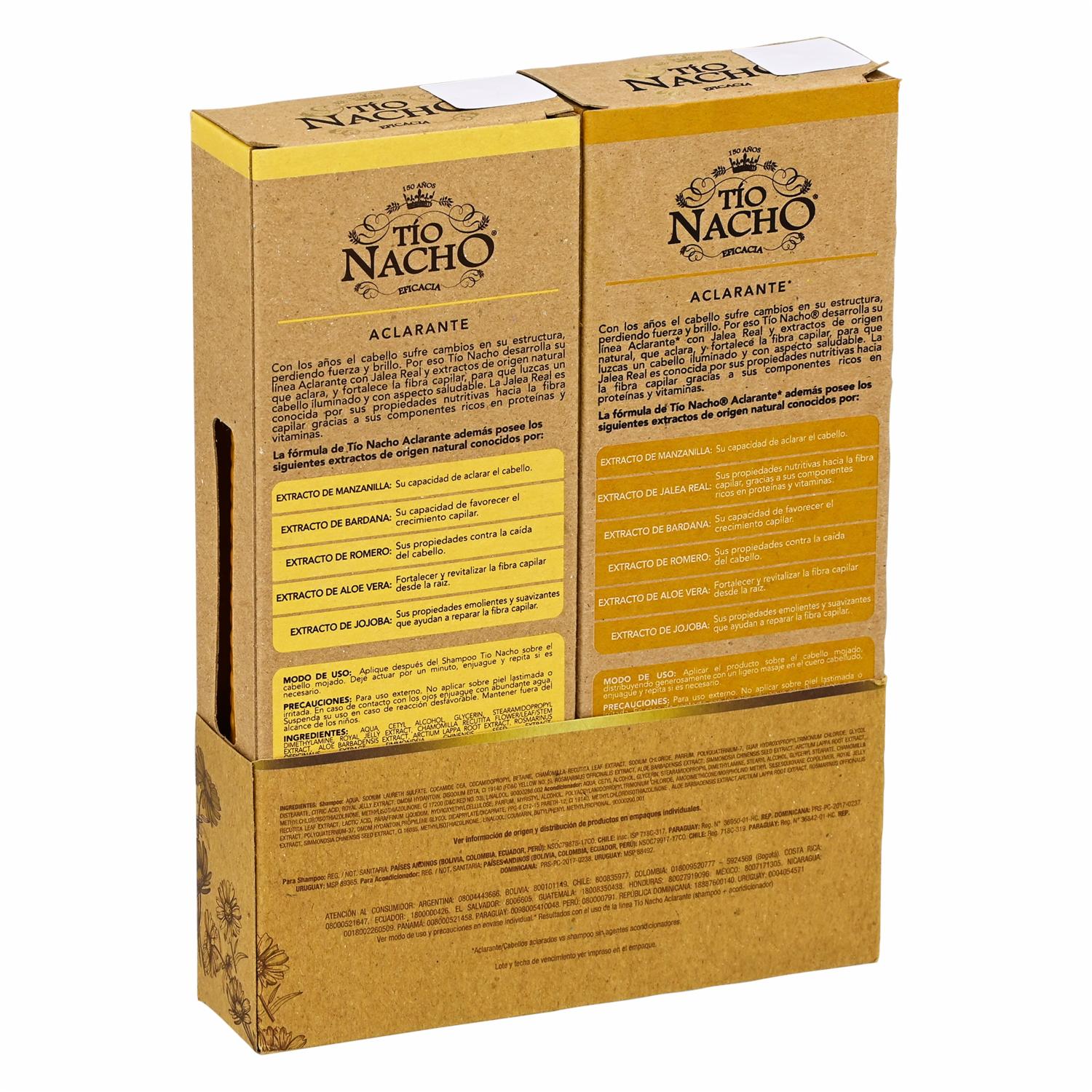 Shampoo + Acondicionador Aclarante TÍO NACHO 950 Ml – TÍO NACHO. Disponible en nuestros locales. Precio y stock pueden variar según la tienda.