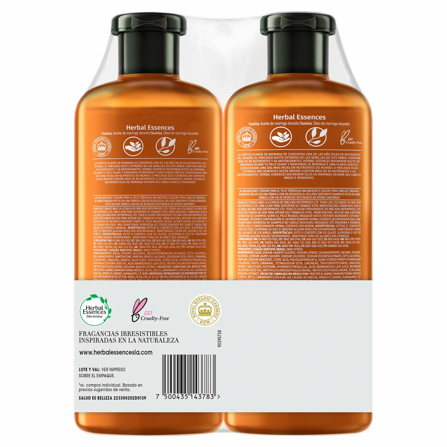 Shampoo Y Acondicionador Herbal Biorenew Aceite Moringa HERBAL ESSENCES 2 X 525 Ml – HERBAL ESSENCES. Disponible en nuestros locales. Precio y stock pueden variar según la tienda.