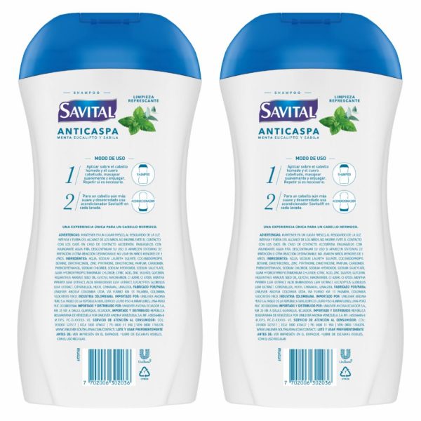 Shampoo Anticaspa Menta Y Eucalipto Pack SAVITAL 2 X 510 Ml