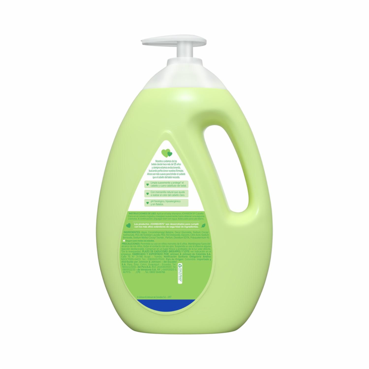 - Shampoo JOHNSON'S® Manzanilla posee manzanilla natural, que ayuda a realzar el color del pelo claro. Limpia suavemente y protege el pelo y cuero cabelludo del bebé