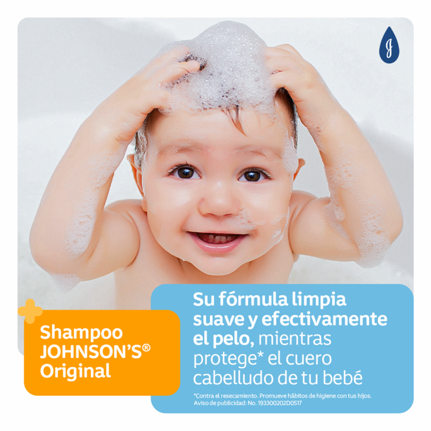 - Shampoo JOHNSON'S® Original limpia efectivamente el pelo de tu bebé y posee una fórmula tan suave para los ojos como el agua pura