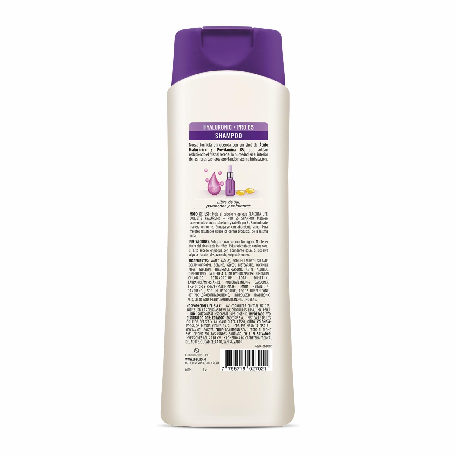 Shampoo Capilar Acido Hialuronico & Pro B5 COQUETTE 400 Ml – COQUETTE. Disponible en nuestros locales. Precio y stock pueden variar según la tienda.