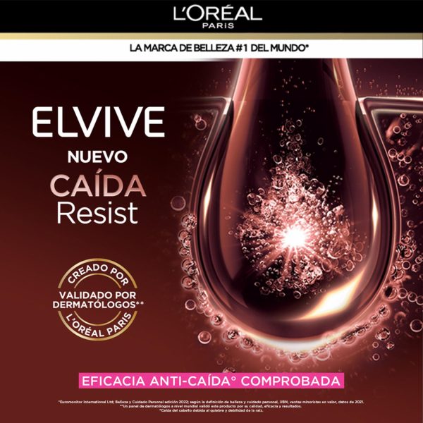 Shampoo Capilar Caída Resist Con Aminexil + Cafeína Para Cabello Quebradizo ELVIVE L’ORÉAL 370 Ml
