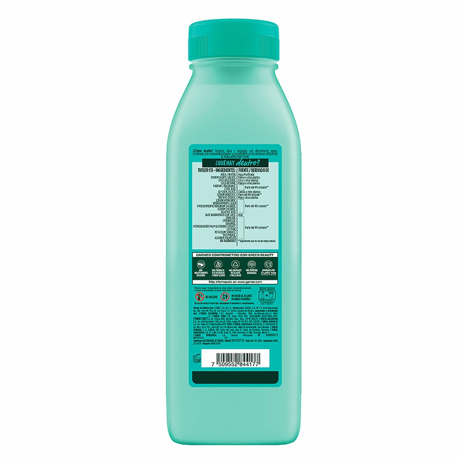 - Cuida la apariencia de tu cabellera día con día con el Shampoo Garnier Fructis hair food aloe vera para cabello deshidratado con presentación de 300 mililitros. Está elaborado con una fórmula biodegradable con 98% de ingredientes naturales.