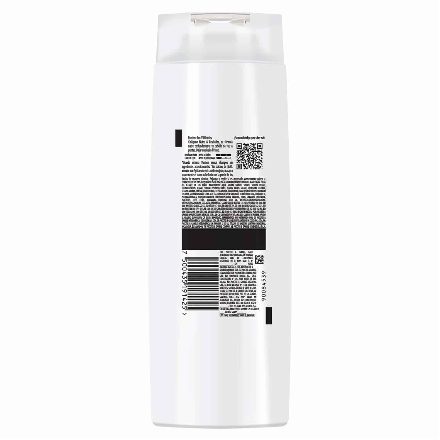 • El Shampoo Nutritivo Pantene Pro-v Miracles Cólageno Nutre Y Revitaliza Sin Sal' Cuenta Con Lípidos Y Antioxidantes Que Se Absorben Instantánea Y Profundamente