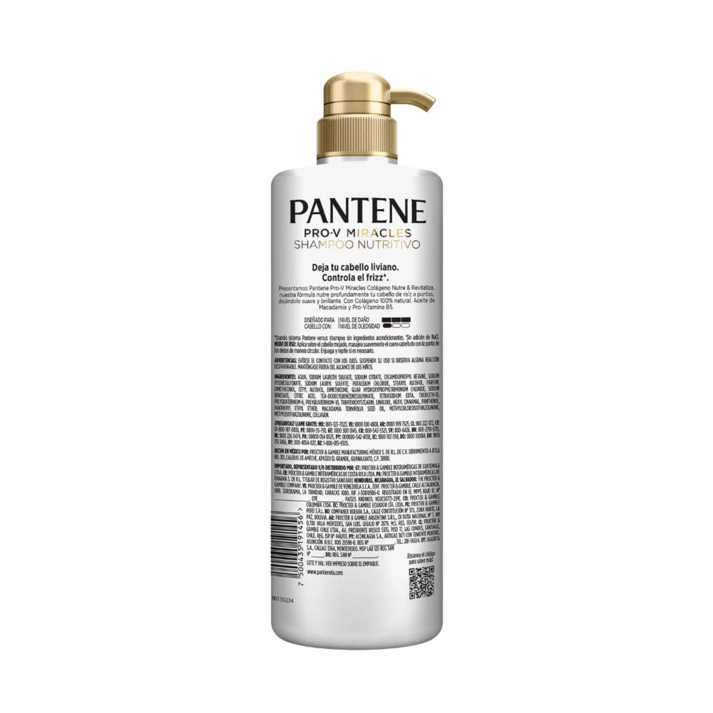 • El Shampoo Nutritivo Pantene Pro-v Miracles Cólageno Nutre Y Revitaliza Sin Sal' Cuenta Con Lípidos Y Antioxidantes Que Se Absorben Instantánea Y Profundamente